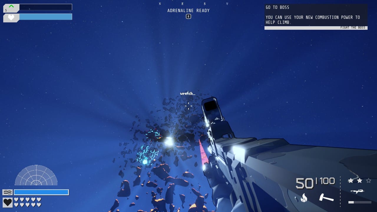 But who needs safety equipment when you're grapple propelling yourself to the freaking cosmos and back. Echo Point Nova might be one of the stranger games I've played recently. My joke has been, I'm pretty sure the first thing written on the whiteboard was "what if you could grapple the clouds" when I say grapple think Batman's classic grappling hook. But ya know... it can hook on to clouds because why not? Echo Point Nova falls under what is called a frenetic shooter. In a single second I can find myself doing a back flip on my hoverboard through open space (the levels are made up of floating islands) lining up a sniper shot while slowing down time, getting the shot off, grappling my way to safety all while avoiding multiple directions of enemy fire. And that's just one second. I'm not a fan of all frenetic shooters but when the formula is dialed just right they pop for me. I mean it's hitting that ADHD dopamine drip feed with so much going on in strung together moments.